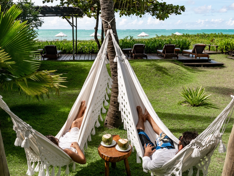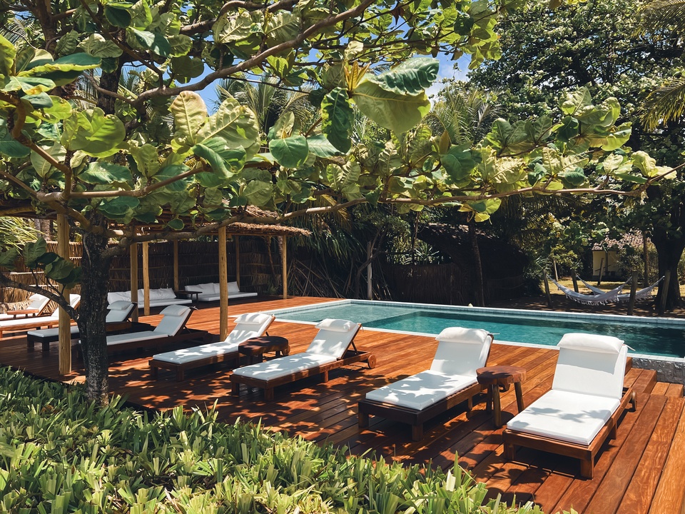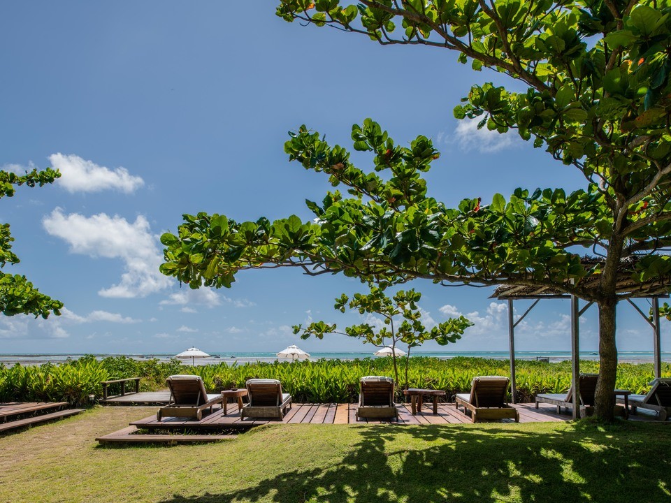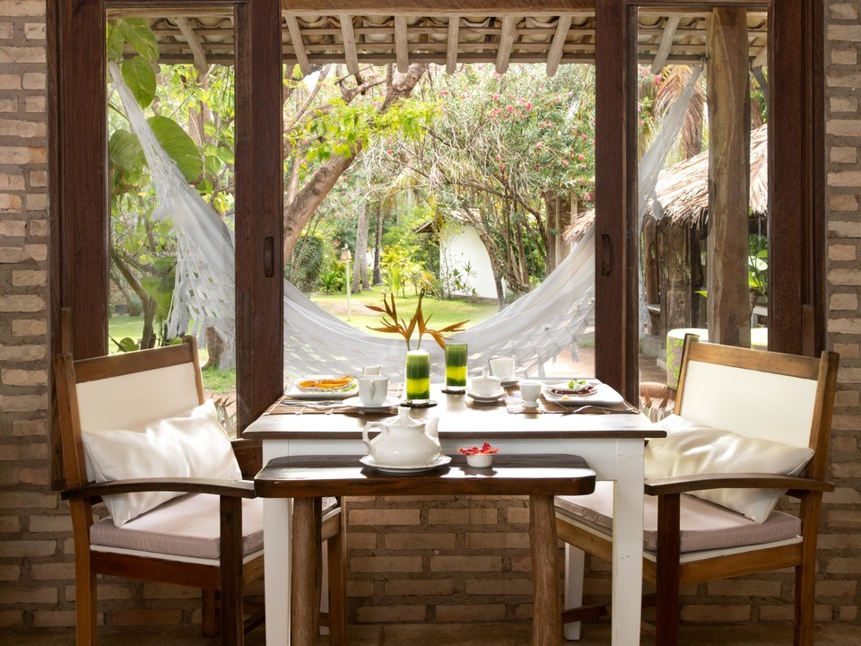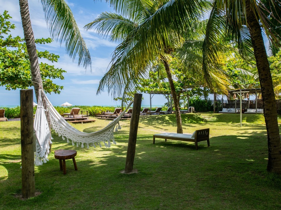 A estrutura da pousada garante o clima de paz. São apenas nove bangalôs diante de uma praia paradisíaca, repleta de coqueiros e uma faixa de areia branca e fina. Para contemplar tudo isso, um deque à beira-mar oferece o local propício para relaxar. Cantinho de massagem, redes pelos jardins, restaurante integrado à paisagem e uma acolhedora sala de leitura complementam o cenário paradisíaco.