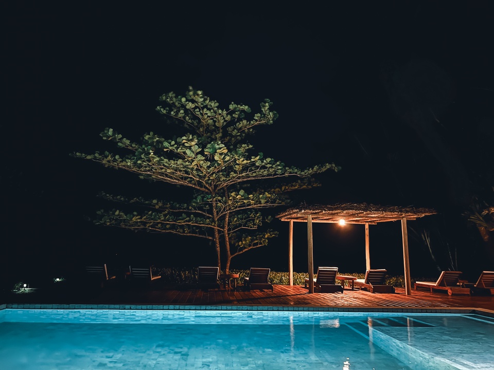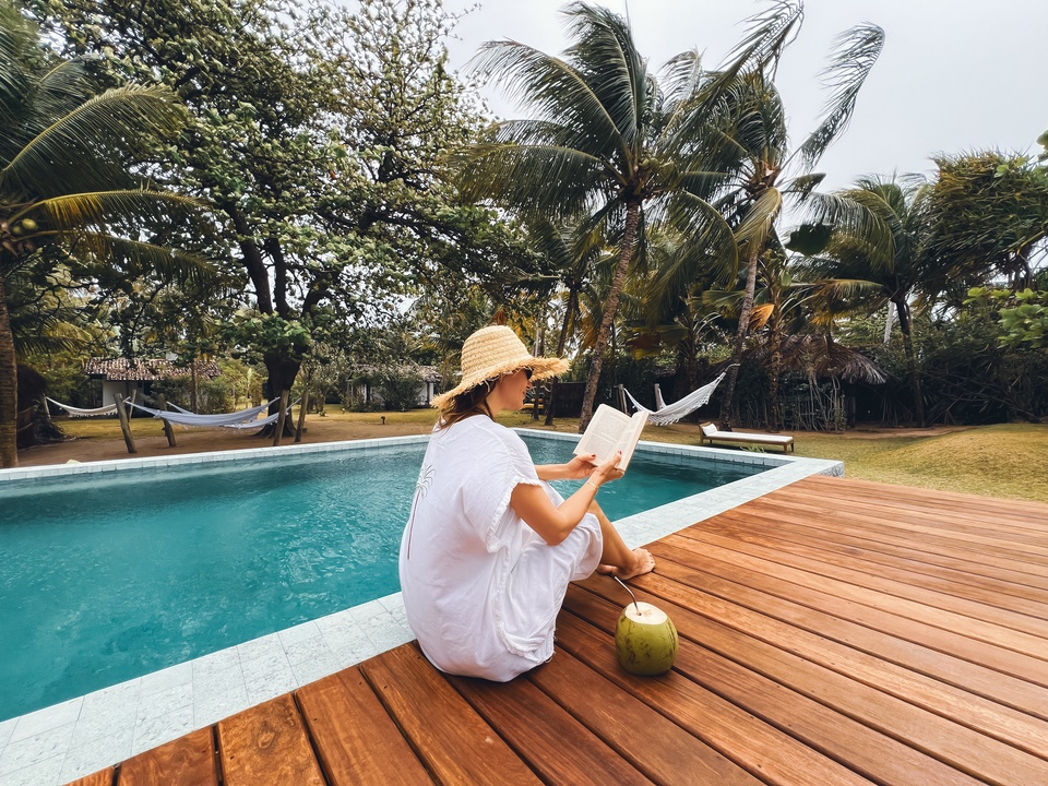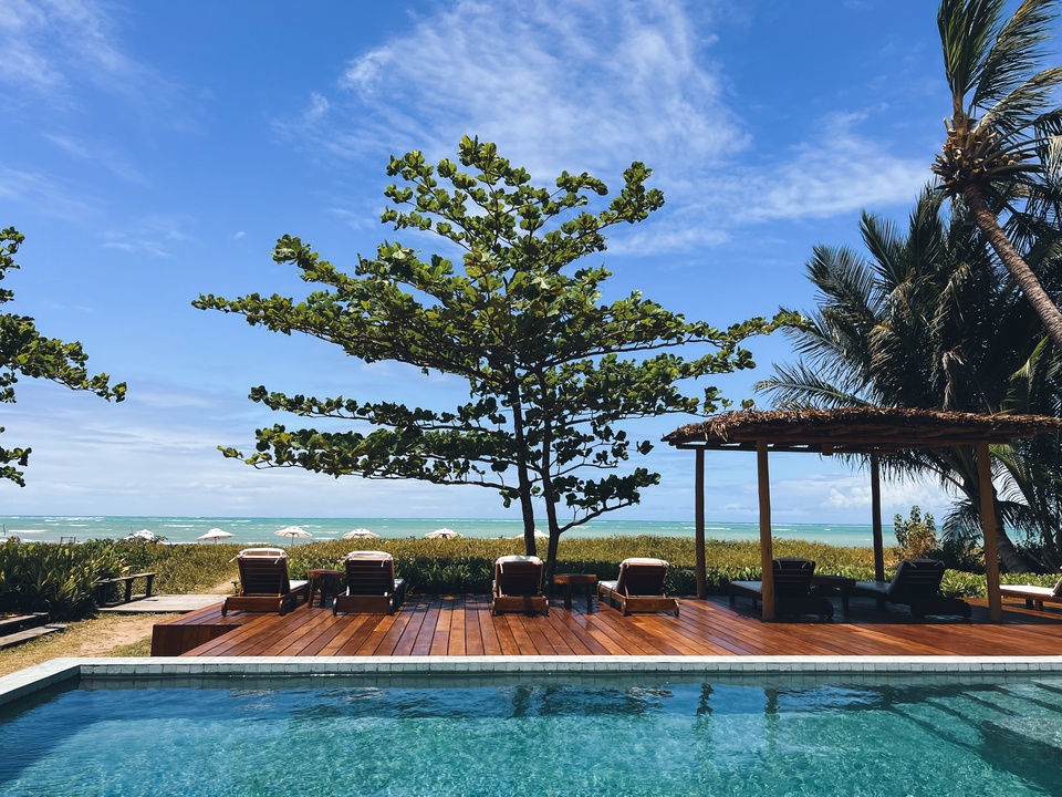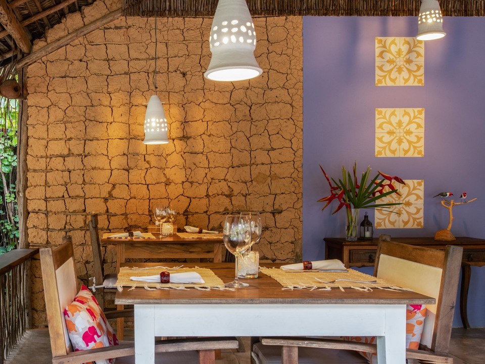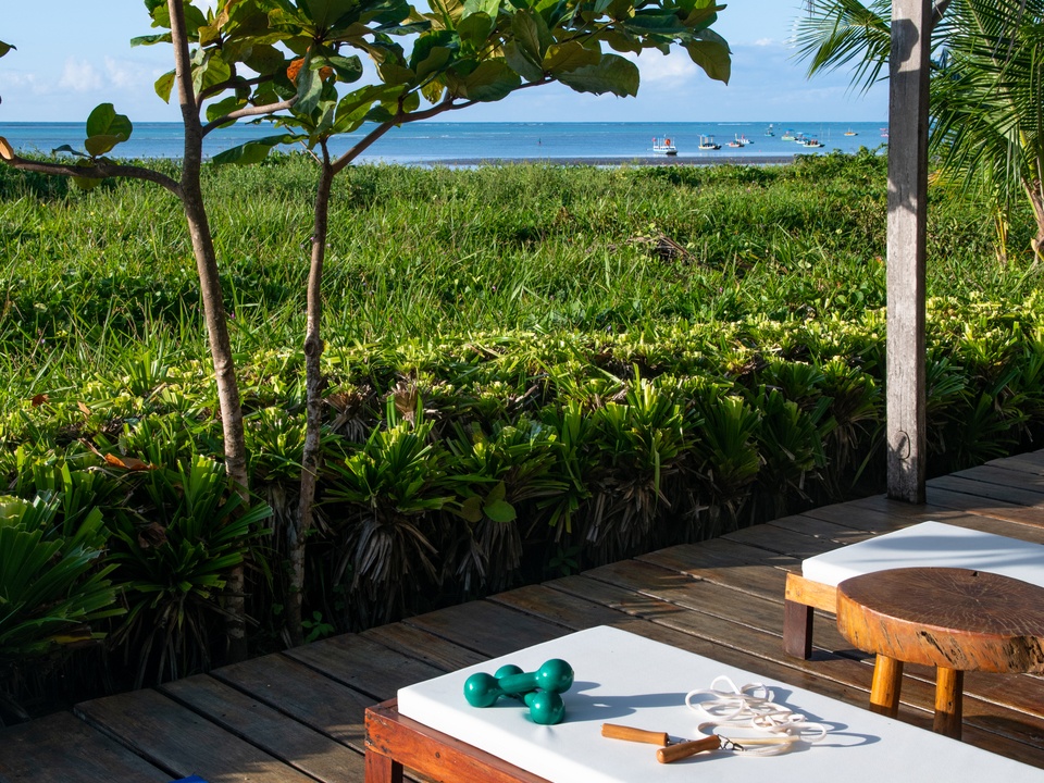 A estrutura da pousada garante o clima de paz. São apenas nove bangalôs diante de uma praia paradisíaca, repleta de coqueiros e uma faixa de areia branca e fina. Para contemplar tudo isso, um deque à beira-mar oferece o local propício para relaxar. Cantinho de massagem, redes pelos jardins, restaurante integrado à paisagem e uma acolhedora sala de leitura complementam o cenário paradisíaco.